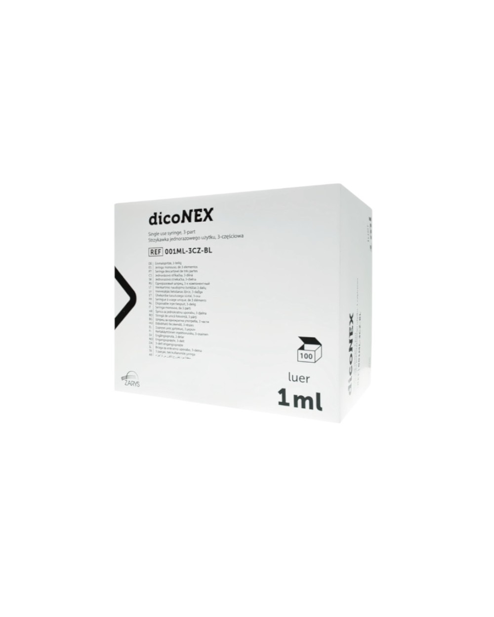 Spritze für subkutane, intramuskuläre und intravenöse Infusionen. Entwickelt für die Entnahme und Verabreichung von Medikamenten/Flüssigkeiten und die Entnahme von Körperflüssigkeiten beim Patienten. Mit grünem, kontrastierendem Kolben und transparentem Zylinder, der eine vollständige Sichtkontrolle des Inhalts ermöglicht. Luer-Typ konische Spitze. Der Kolben ist dank einer Gummidichtung leichtgängig. Eine Blende schützt den Kolben vor versehentlichem Ausstoßen des Kolbens. Das spezielle Design des 1 ml-Spritzenkolbens reduziert das Restvolumen des Medikaments/der Flüssigkeit. Die Spritze wird mit Ethylenoxid sterilisiert. Nicht-pyrogen, ungiftig, latex- und phthalatfrei.