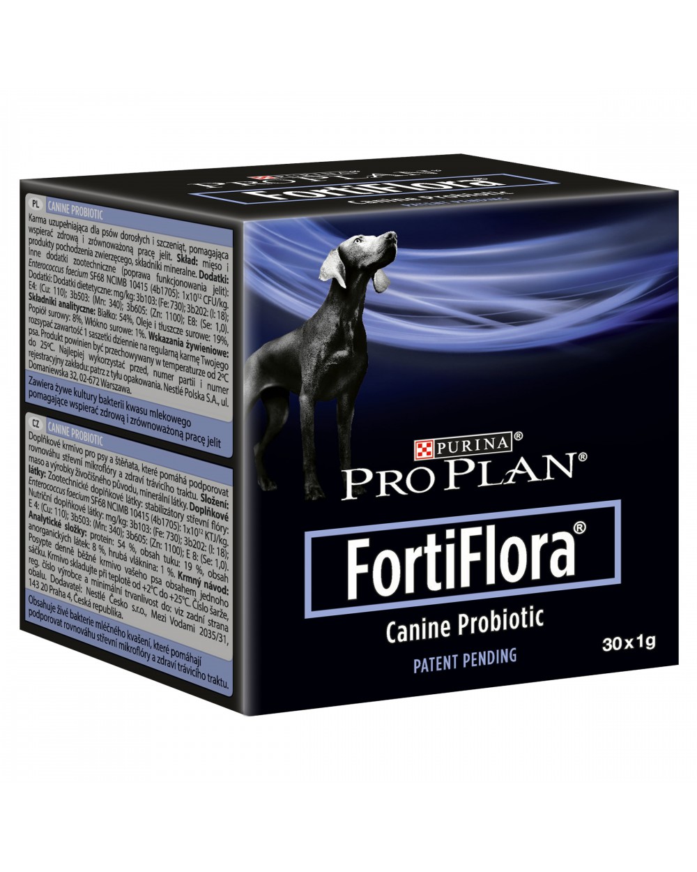 PURINA PVD FortiFlora Dog ist ein Ergänzungsfuttermittel für erwachsene Hunde und Welpen zur Unterstützung einer gesunden und ausgewogenen Darmfunktion. Ein garantiert verkapseltes Ergänzungsmittel, das nachweislich die Gesundheit des Magen-Darm-Trakts unterstützt und das Immunsystem stärkt.