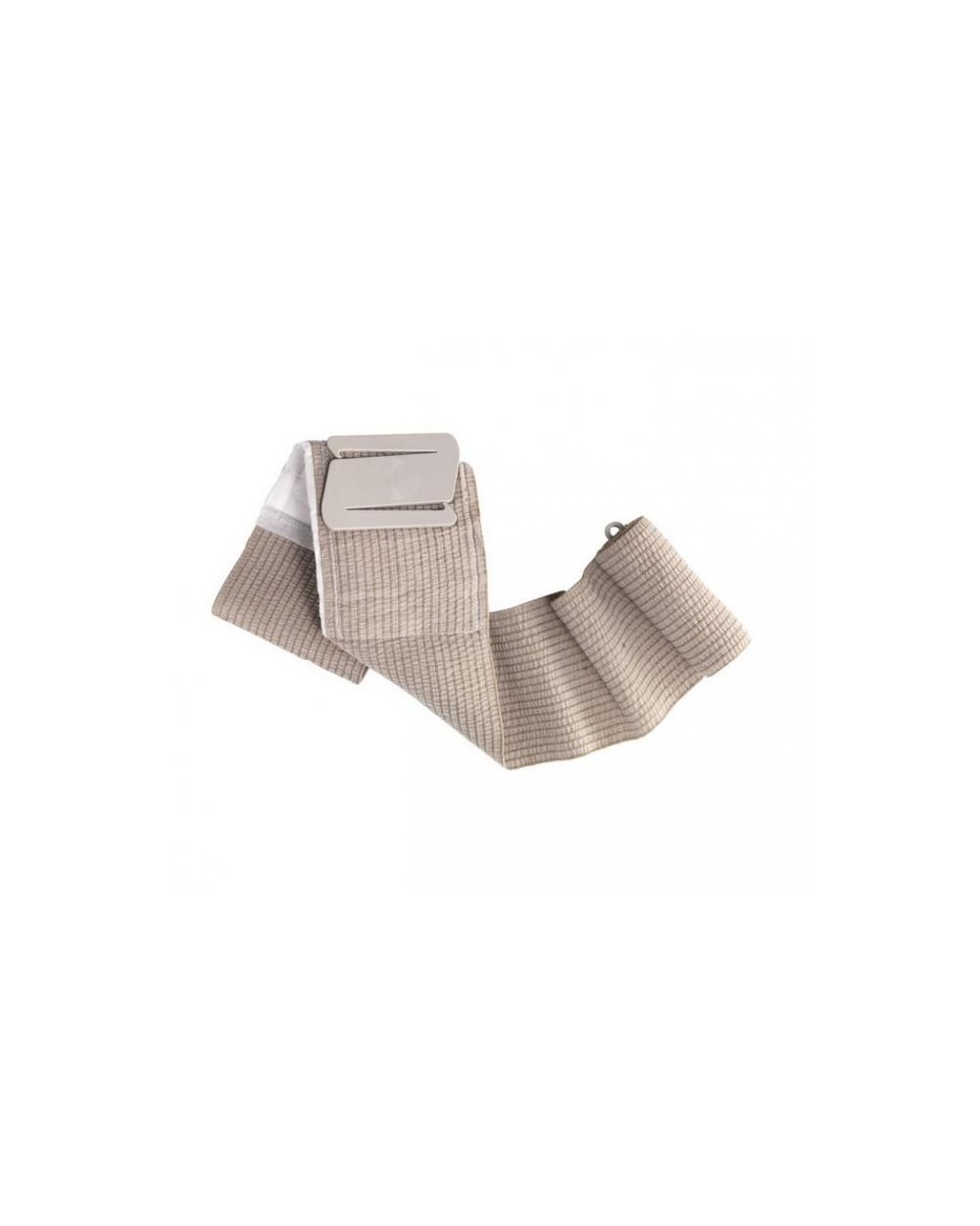 Am Ende der Binde ist ein hakenförmiger Kunststoffstreifen angebracht, mit dem sich die Binde leicht befestigen lässt.