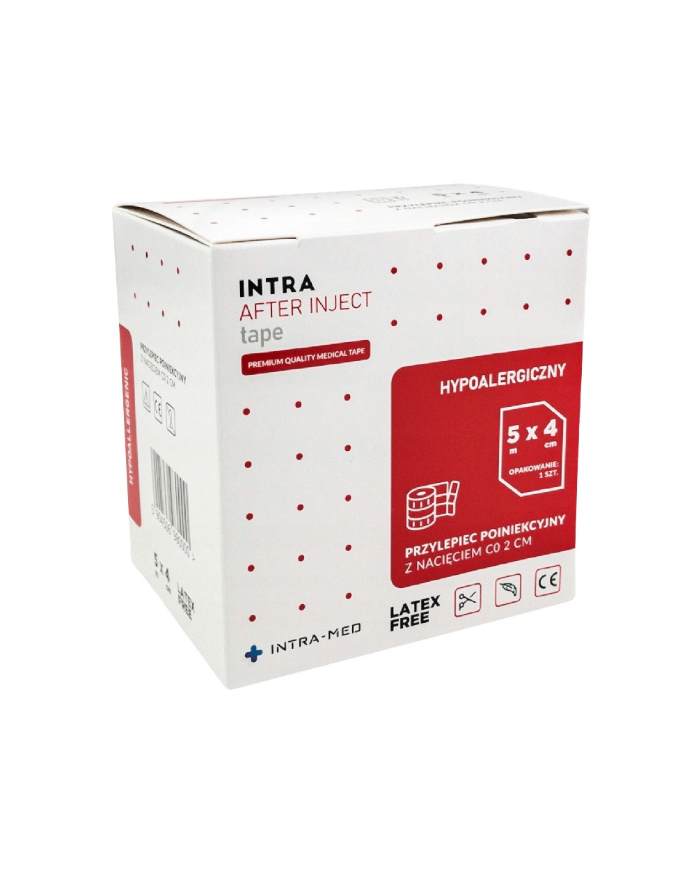 Intra After Inject ist ein hypoallergenes Pflaster für Injektionsstellen aus dehnbarem Vliesstoff mit einer saugfähigen Einlage.