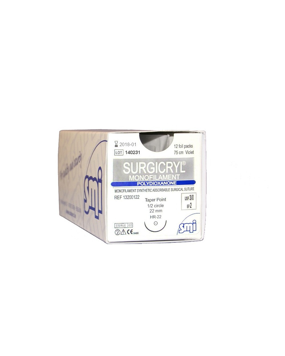 Surgicryl Monofilament-Chirurgiefäden sind synthetische, monofilamentäre resorbierbare Fäden mit einer sehr langen Gewebeunterstützungsdauer. Die Fäden bestehen aus hochwertigem Polydioxanon (PDO) mit einer einheitlichen Oberflächenstruktur, die Gewebereaktionen minimiert. Violette Farbe. Die Packung enthält 12 Beutel.