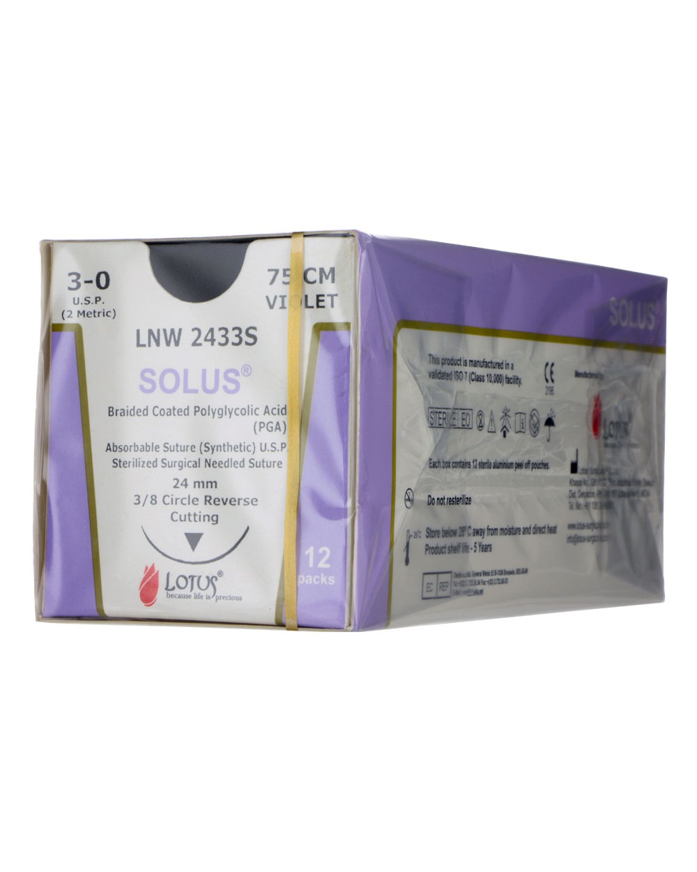 Das Geflecht ist violett. Die Resorptionsdauer beträgt 60 bis 90 Tage. Die Packung enthält 12 Beutel.