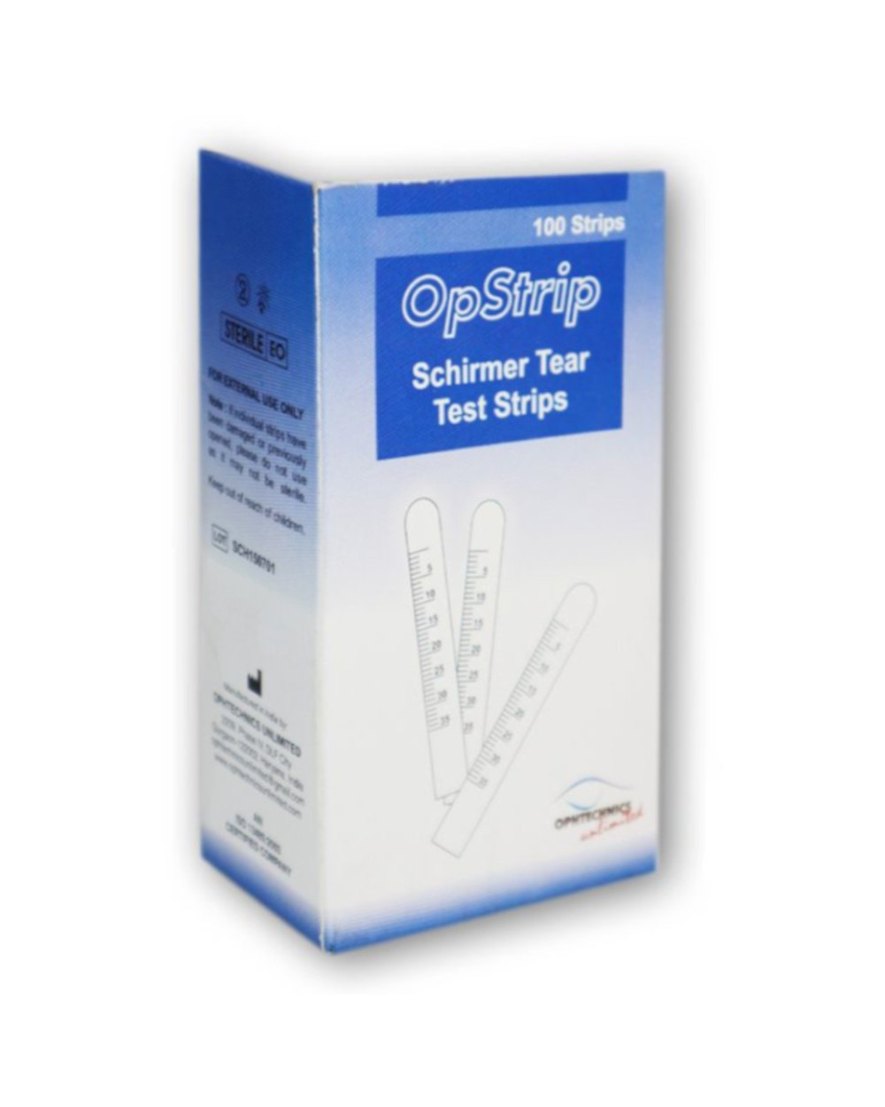 Der Schirmer-Tränen-Test (ohne blauen Indikator) wird in der Augenheilkunde zur Beurteilung der Tränenproduktion der Tränendrüsen eingesetzt. Er ist ein wichtiges Instrument zur Diagnose von Erkrankungen im Zusammenhang mit trockenen Augen und anderen Störungen der Tränenproduktion (Erkrankungen, die durch unzureichende Tränenproduktion oder übermäßige Verdunstung des Tränenfilms verursacht werden). Deutlich gekennzeichnete Skala. Sterile Streifen, einzeln verpackt. Die Packung enthält 100 Stück.