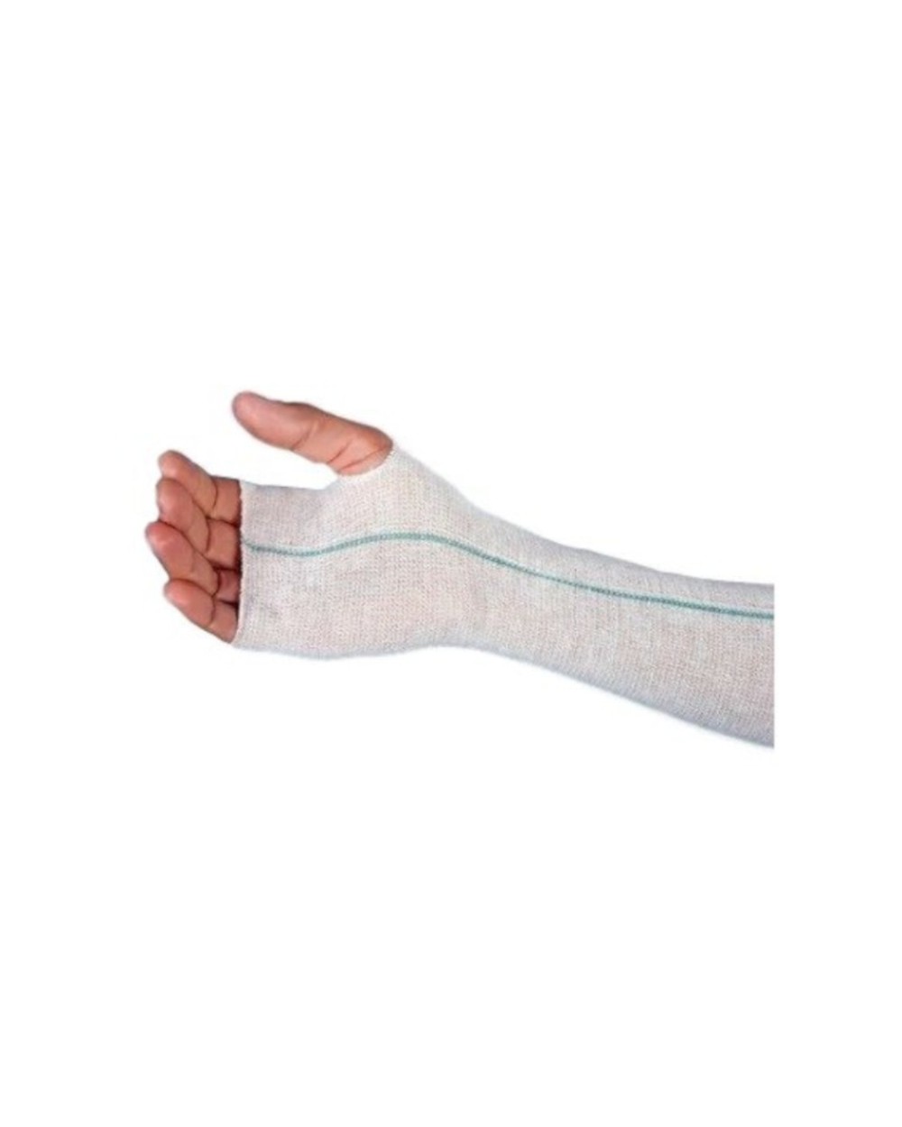 Der elastische Schlauchverband wird aus einem Mischgewebe mit hohem Naturfaseranteil hergestellt.